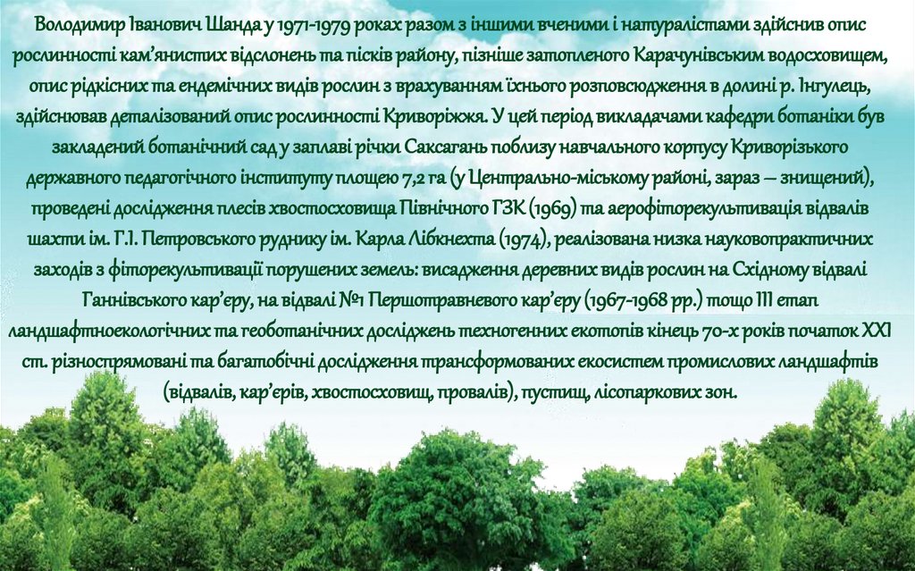 здійснював деталізований опис рослинності Криворіжжя. У цей період викладачами кафедри ботаніки був