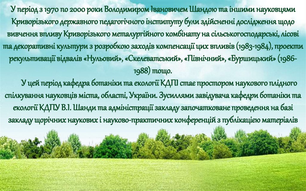 кафедри ботаніки та екології Криворізького педагогічного інститута.