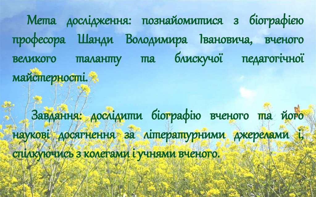 Мета дослідження: познайомитися з біографієюпрофесора Шанди Володимира Івановича, вченого