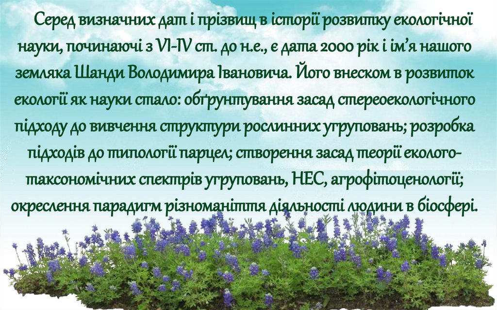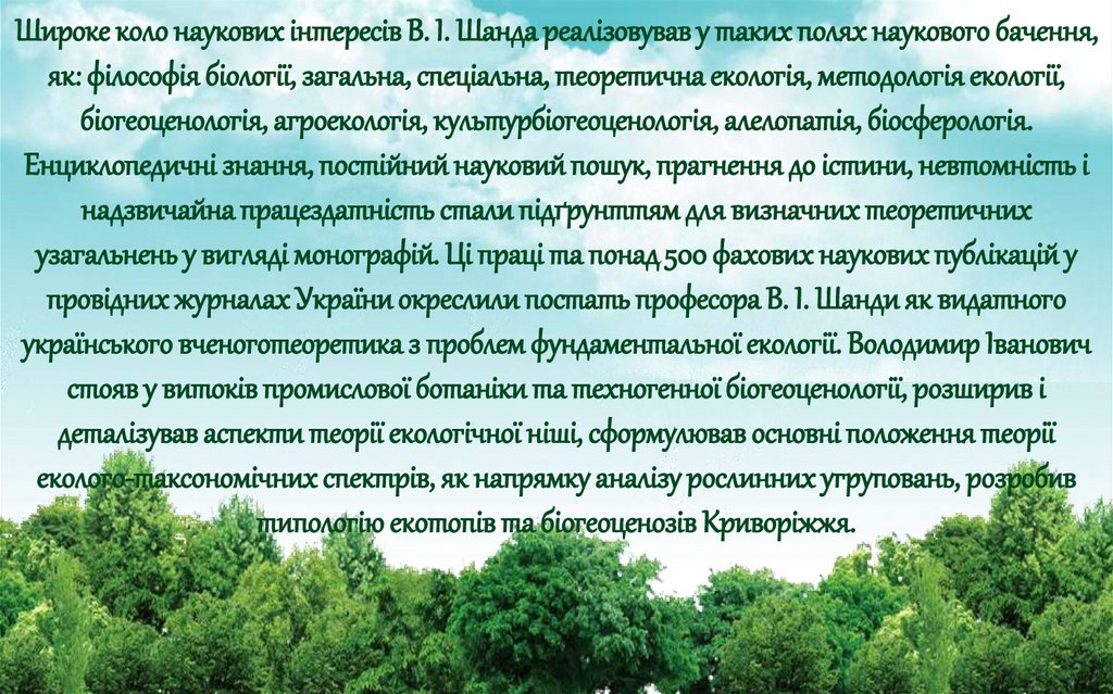 українського вченоготеоретика з проблем фундаментальної екології. Володимир Іванович