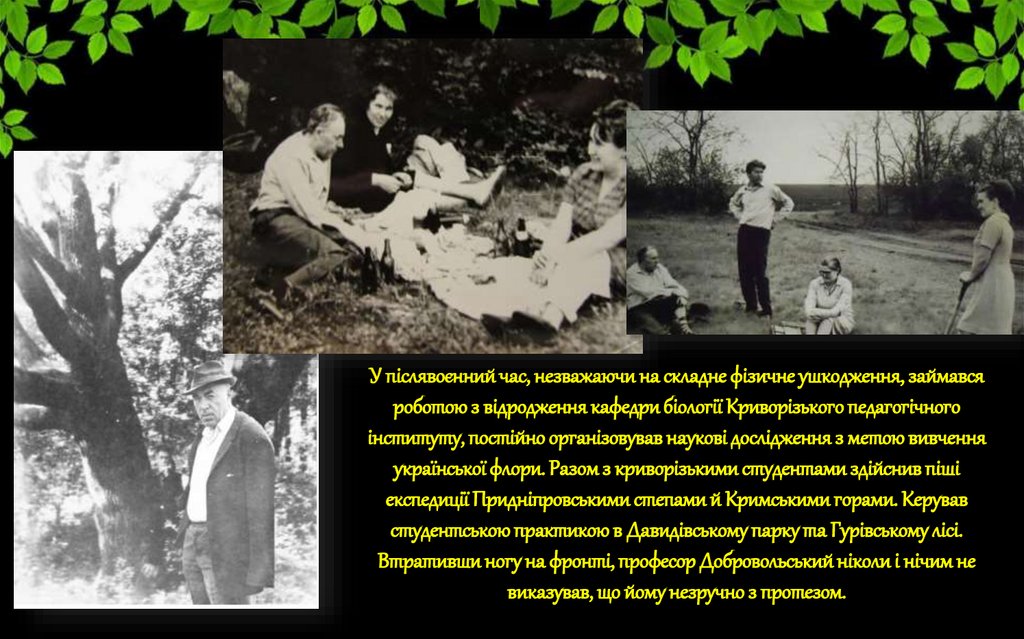 вивченню рослинності Кривого Рогу і, перш за все, Гурівського лісу. У 1953 році