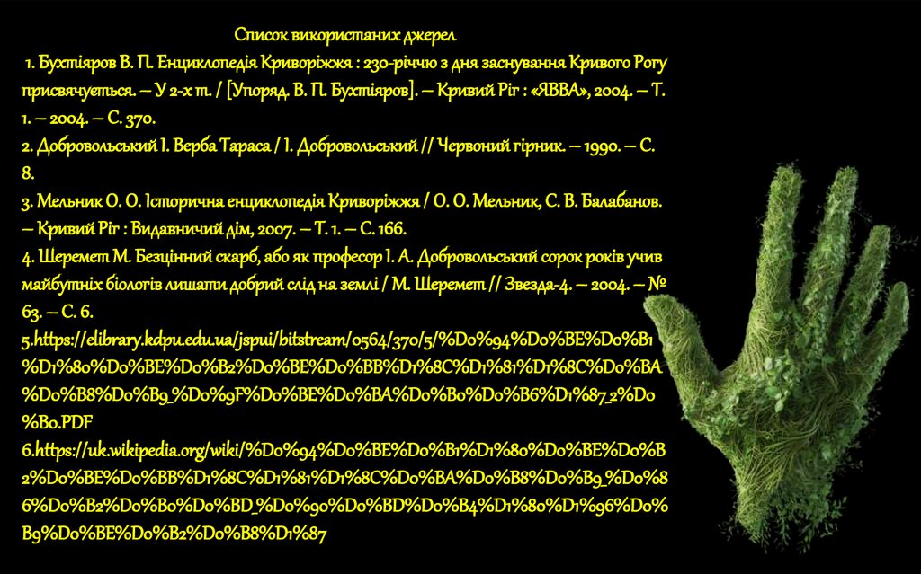 Список використаних джерел1. Бухтіяров В. П. Енциклопедія Криворіжжя : 230-річчю з дня заснування Кривого Рогу