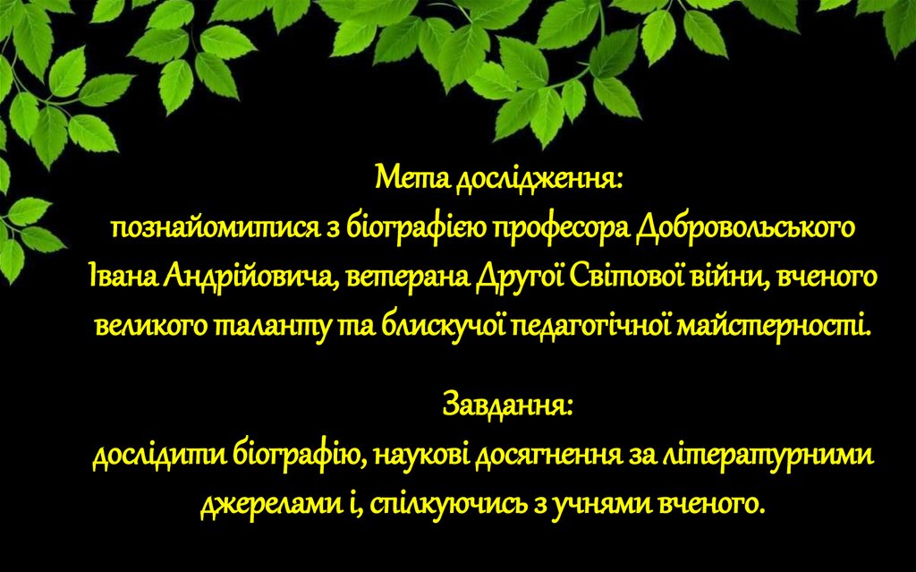Мета дослідження:познайомитися з біографією професора Добровольського