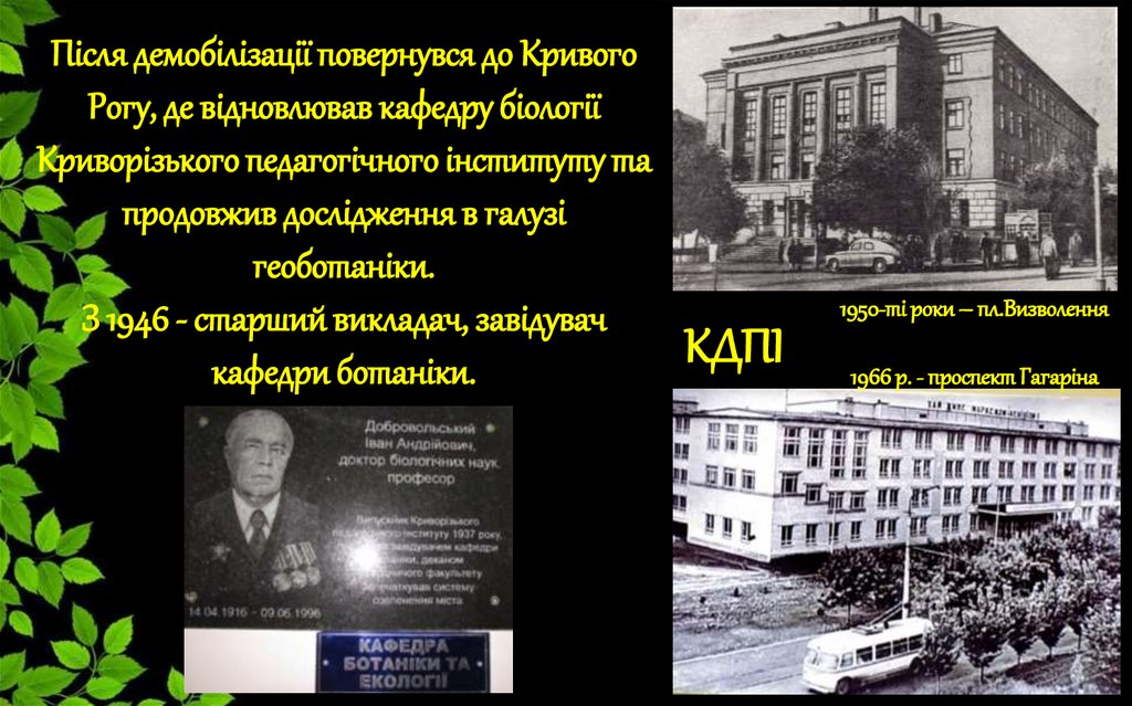 Після демобілізації повернувся до КривогоРогу, де відновлював кафедру біології