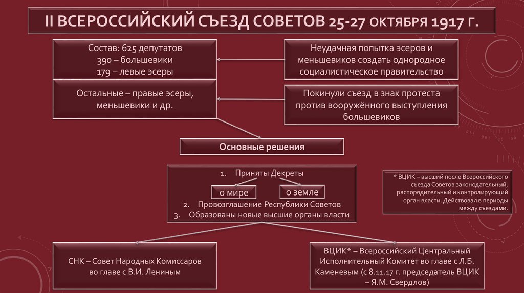 II ВСЕРОССИЙСКИЙ СЪЕЗД СОВЕТОВ 25-27 ОКТЯБРЯ 1917 Г.Состав: 625 депутатов