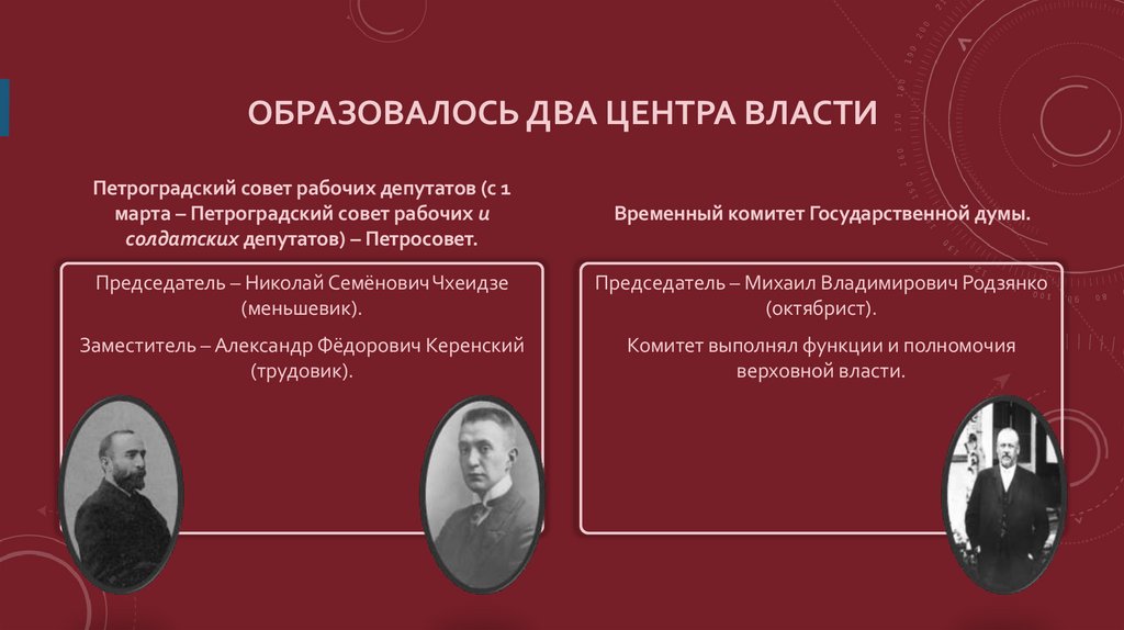 ОБРАЗОВАЛОСЬ ДВА ЦЕНТРА ВЛАСТИПетроградский совет рабочих депутатов (с 1