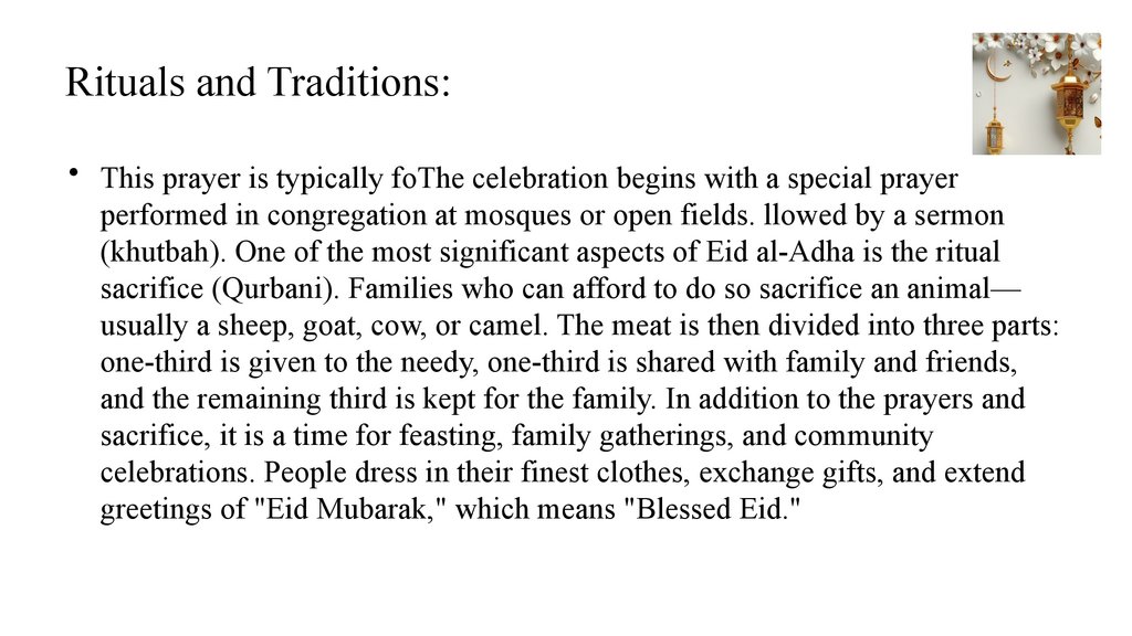 (khutbah). One of the most significant aspects of Eid al-Adha is the ritual