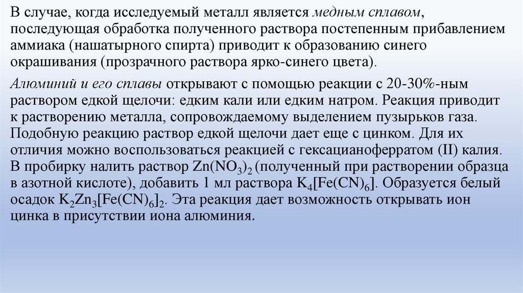 В случае, когда исследуемый металл является медным сплавом,последующая обработка полученного раствора постепенным прибавлением