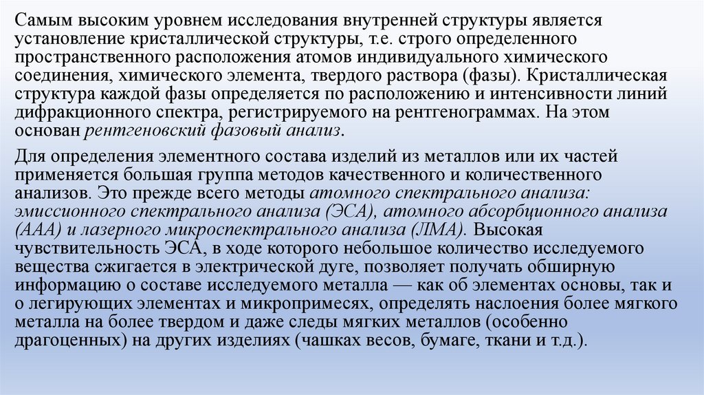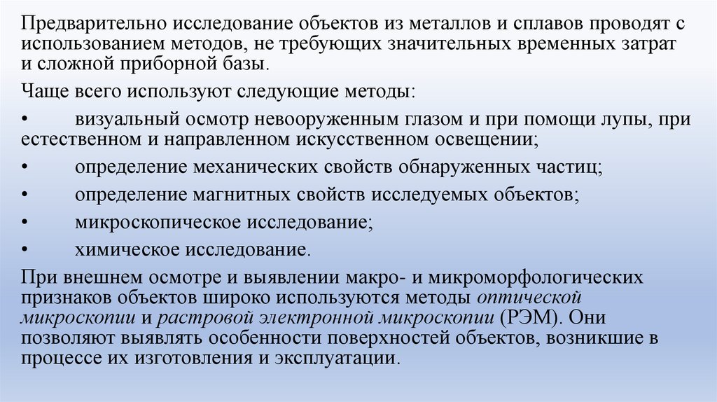 Предварительно исследование объектов из металлов и сплавов проводят сиспользованием методов, не требующих значительных временных затрат
