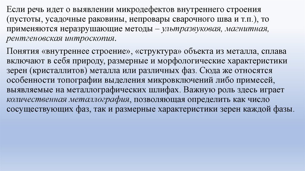 Если речь идет о выявлении микродефектов внутреннего строения(пустоты, усадочные раковины, непровары сварочного шва и т.п.), то