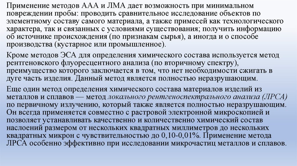 ЛРСА особенно эффективно при исследовании микрочастиц металлов и сплавов.