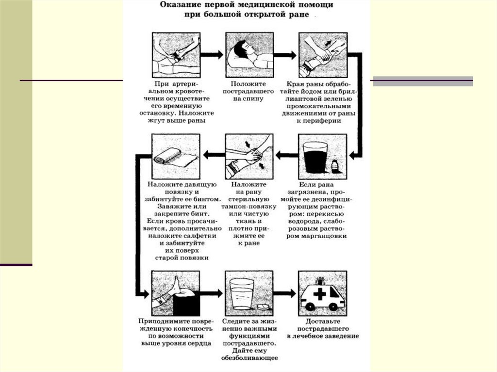 • кровь спокойно вытекает из раны, а не бьёт фонтаном;