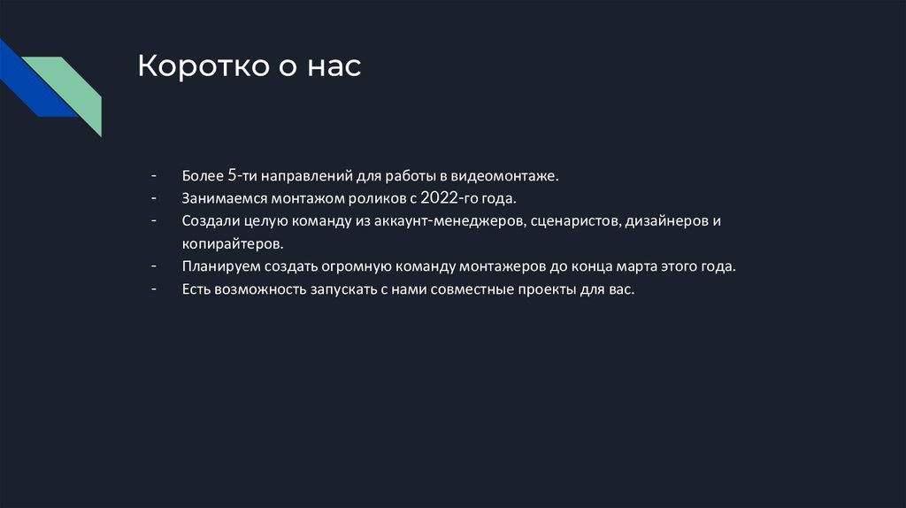 Планируем создать огромную команду монтажеров до конца марта этого года.