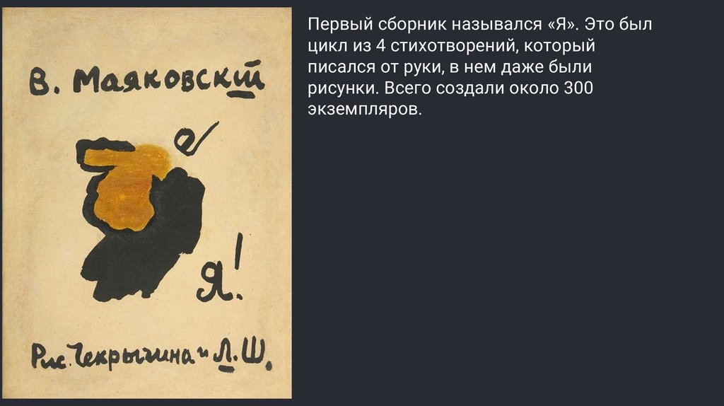 Первый сборник назывался «Я». Это былцикл из 4 стихотворений, который