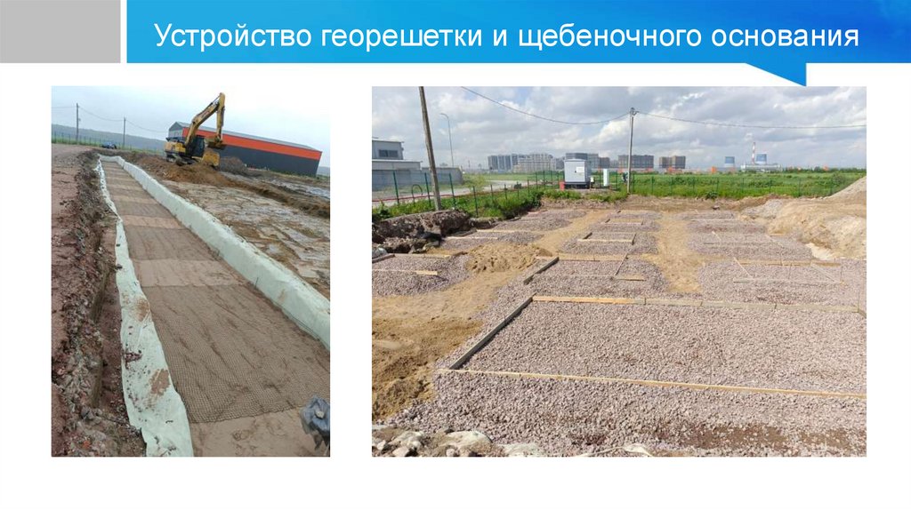 Устройство георешетки и щебеночного основания8.