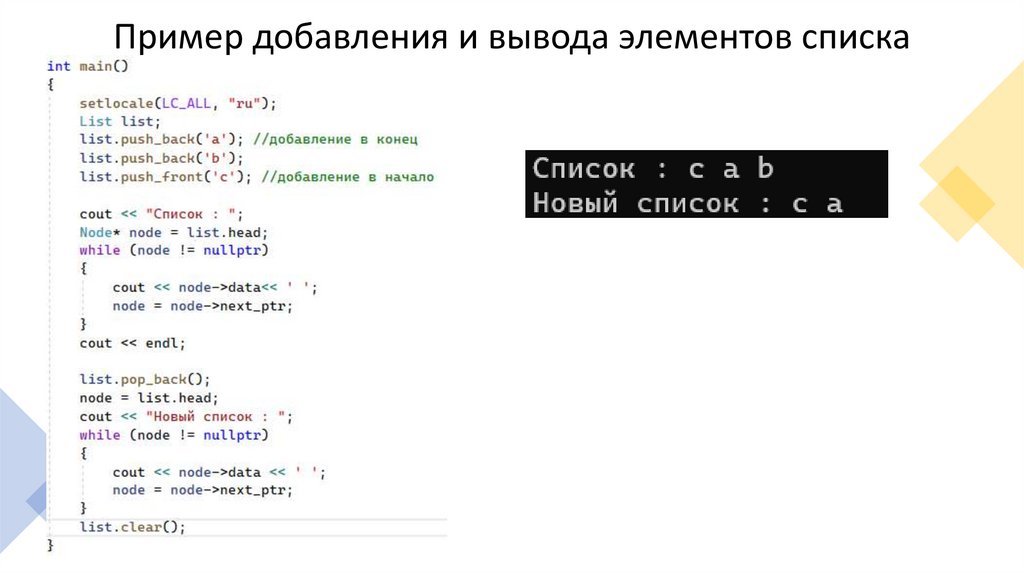 Пример добавления и вывода элементов списка12.