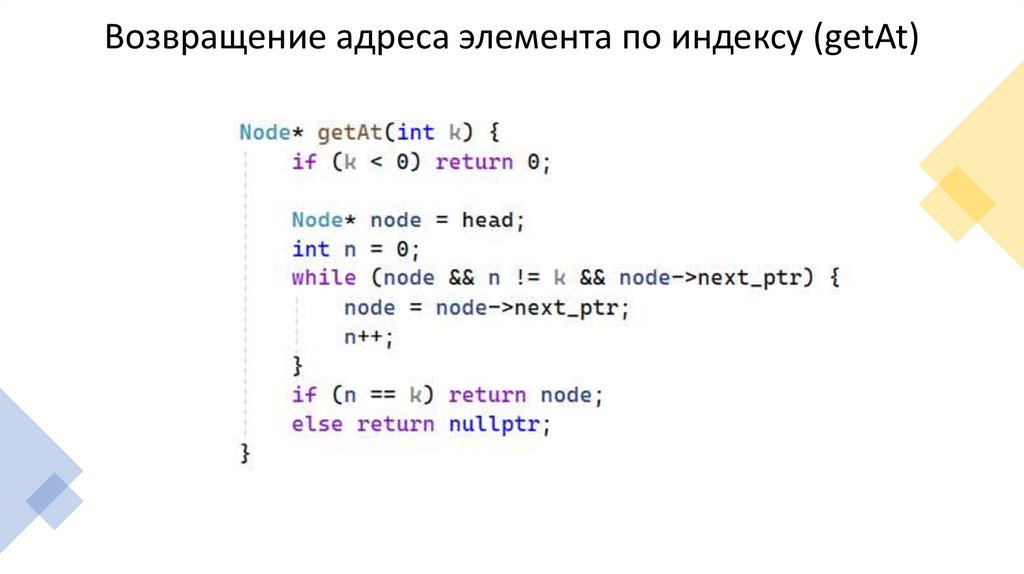 Возвращение адреса элемента по индексу (getAt)14.