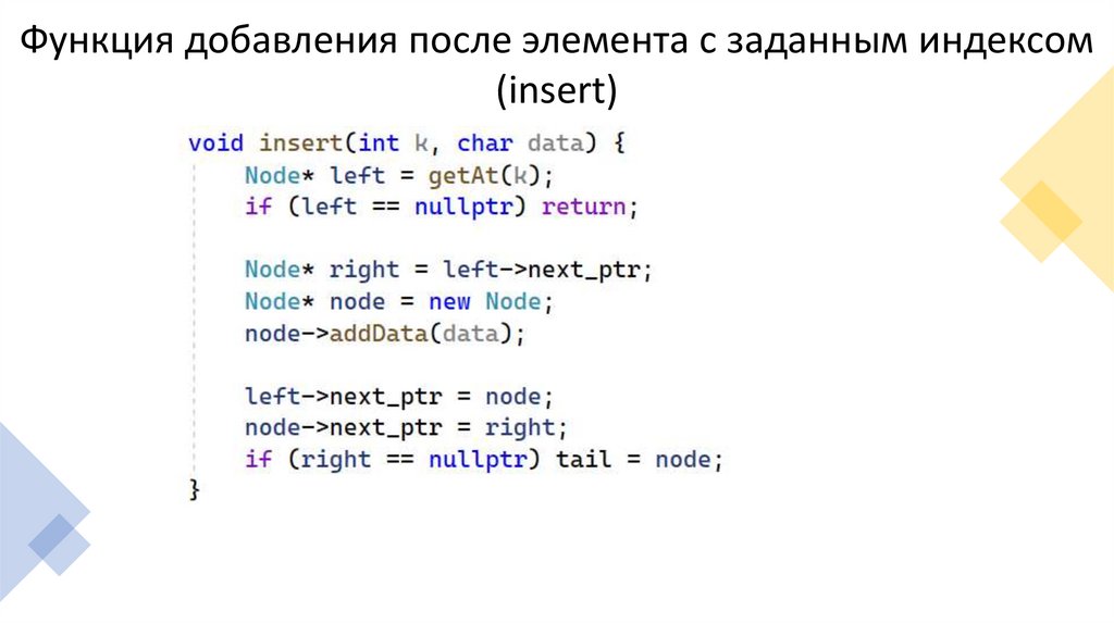 Функция добавления после элемента с заданным индексом(insert)