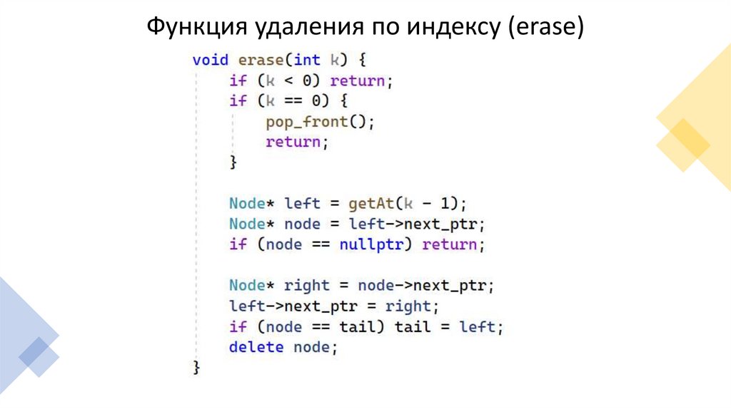 Функция удаления по индексу (erase)16.