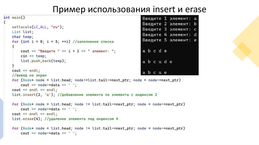 Пример использования insert и erase17.