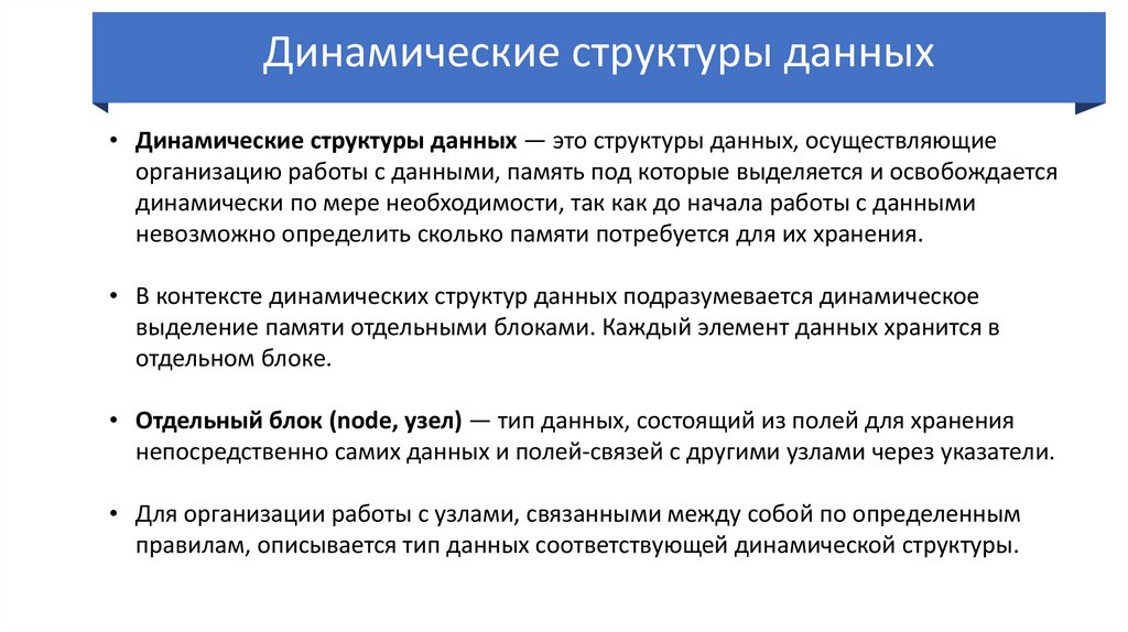• В контексте динамических структур данных подразумевается динамическое