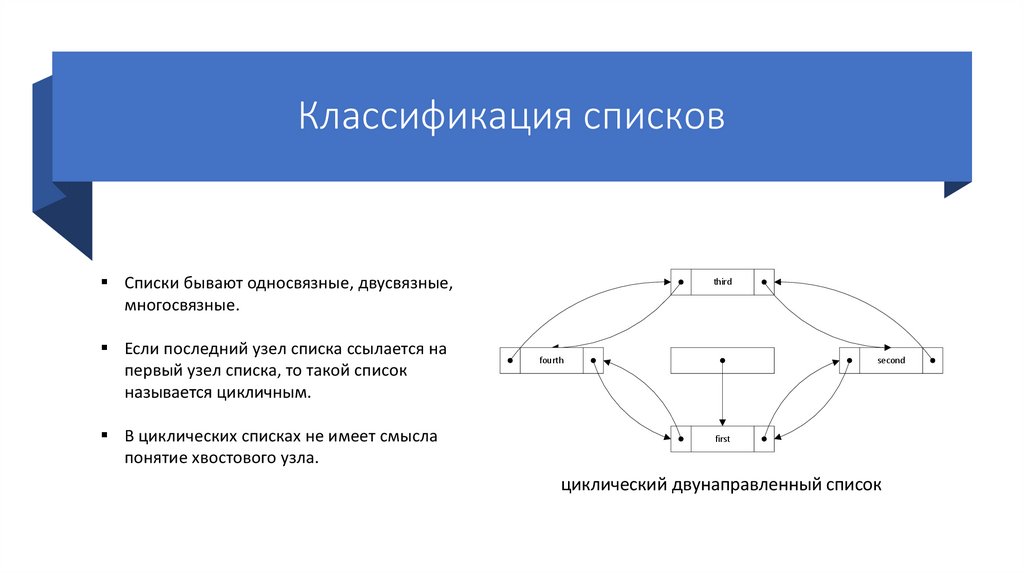 Классификация списковСписки бывают односвязные, двусвязные,