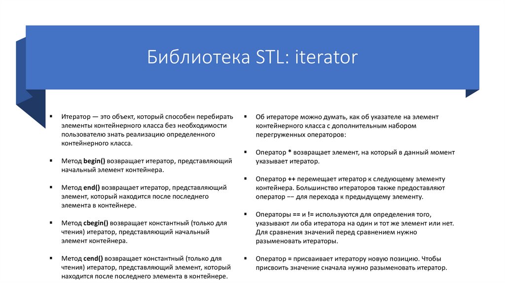 Библиотека STL: iteratorИтератор — это объект, который способен перебирать