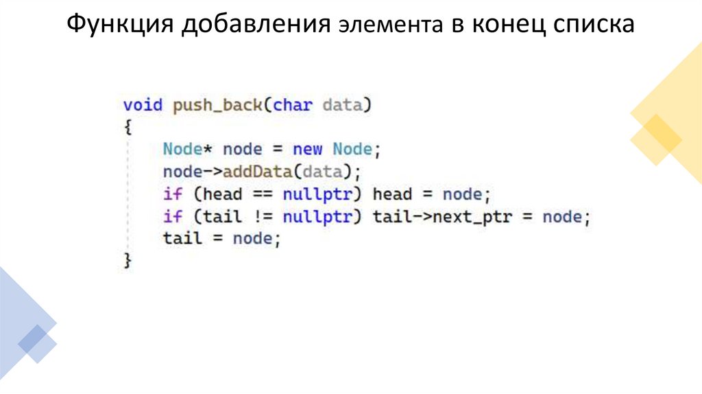 Функция добавления элемента в конец списка9.