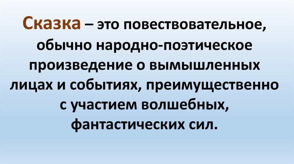 Сказка – это повествовательное,обычно народно-поэтическое