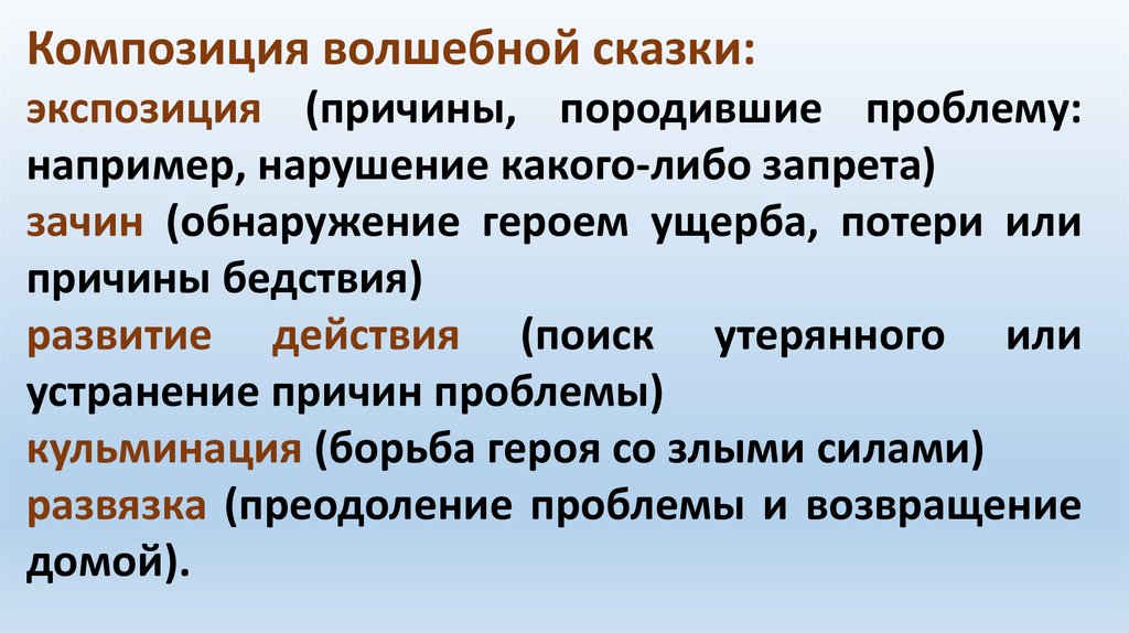 Композиция волшебной сказки:экспозиция (причины, породившие проблему: