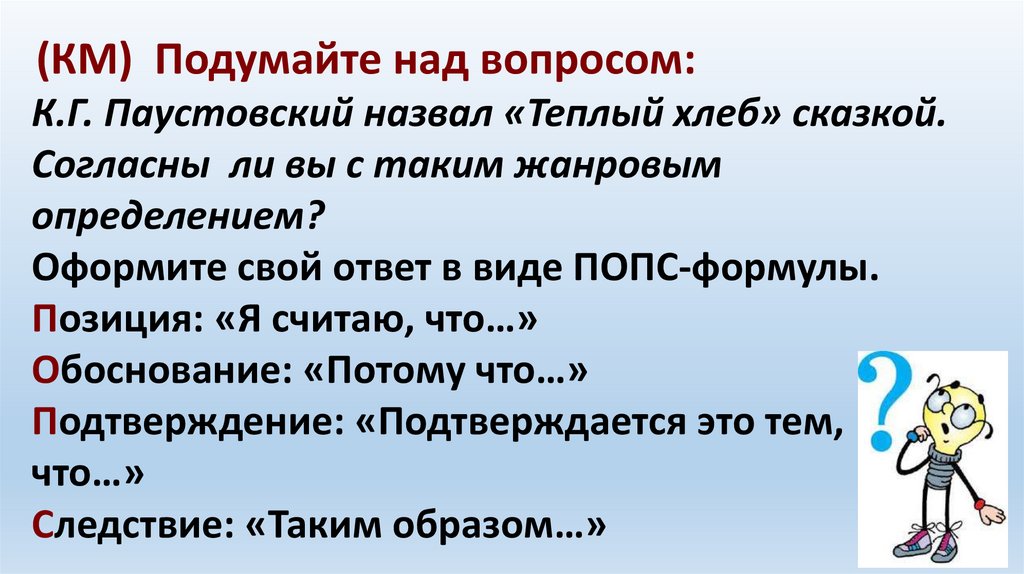 (КМ) Подумайте над вопросом:К.Г. Паустовский назвал «Теплый хлеб» сказкой.