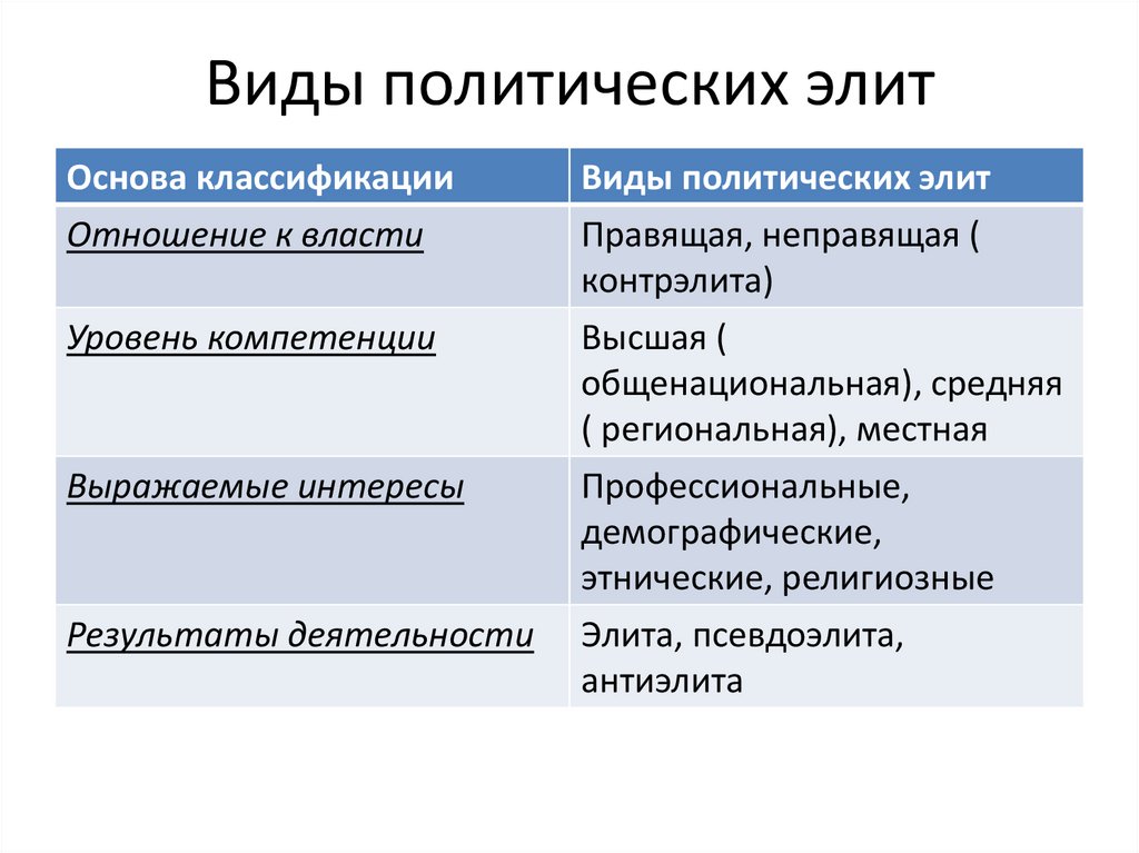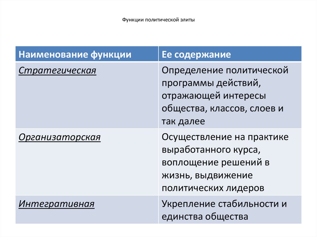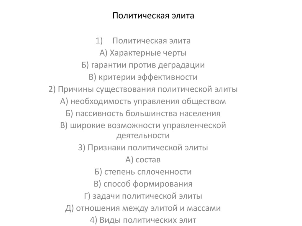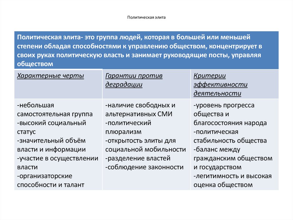 Политическая элитаПолитическая элита- это группа людей, которая в большей или меньшей