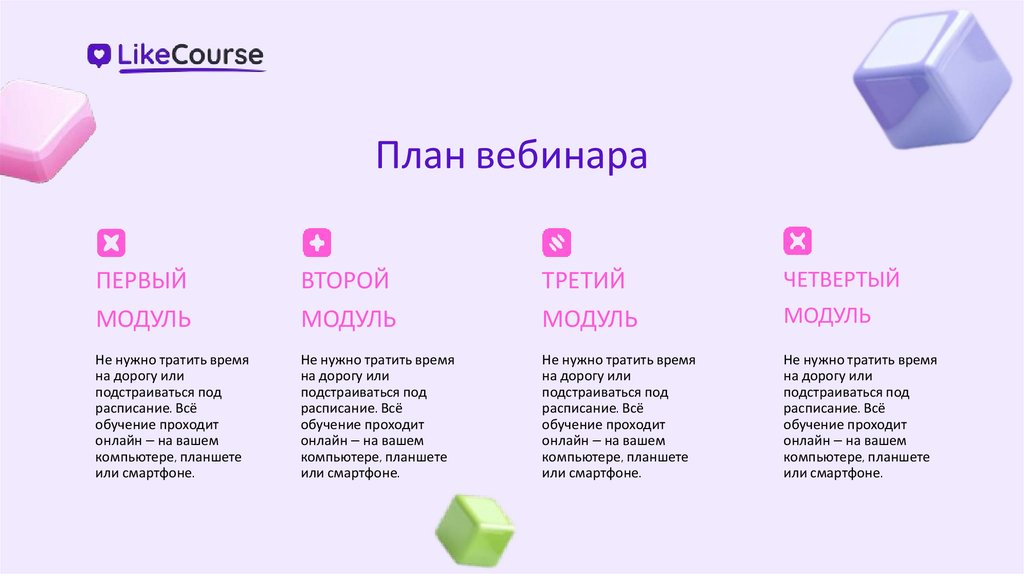 План вебинара LikeCourse
