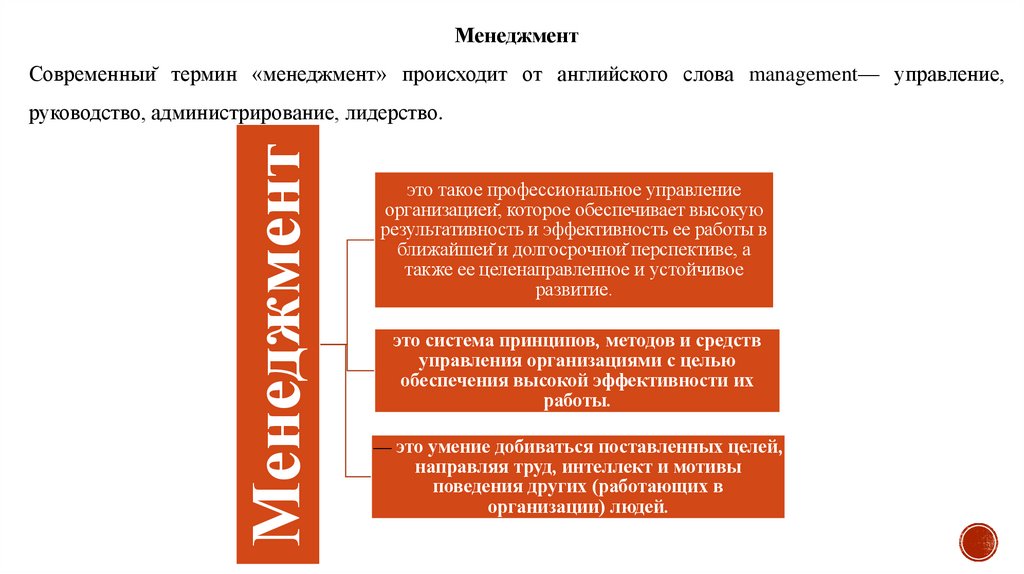 МенеджментСовременный термин «менеджмент» происходит от английского слова management— управление,