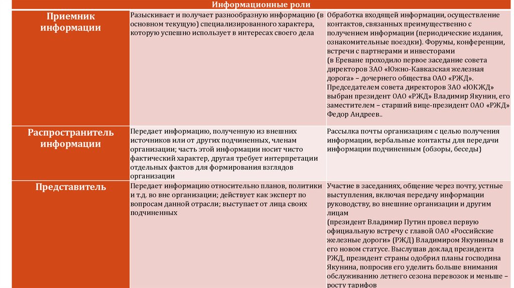 всех значительных и важных переговорах (менеджер в (10 апреля глава ОАО «РЖД» В.И.Якунин представил