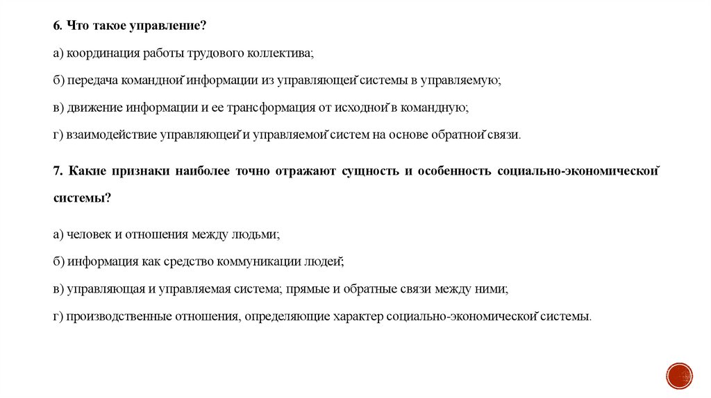 4. Что является объектом управления, в соответствии с которым строится система управления?а) только национальное хозяйство и предприятия, которые являются основным звеном системы национального