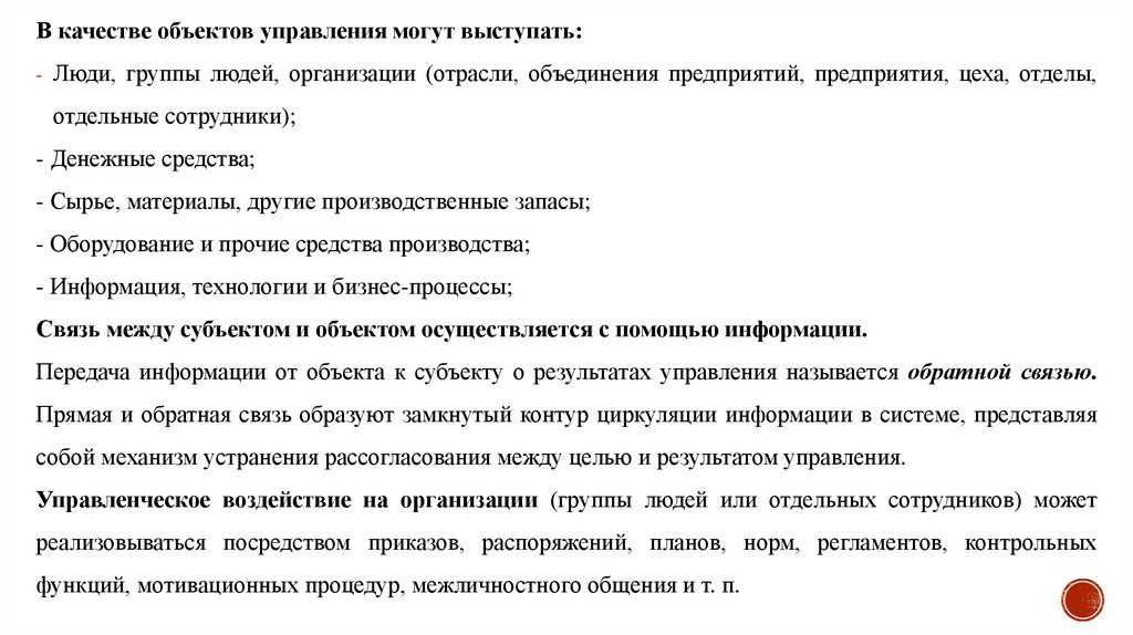 Управление — это целенаправленное воздействие на управляемый объект (организацию, подразделение,