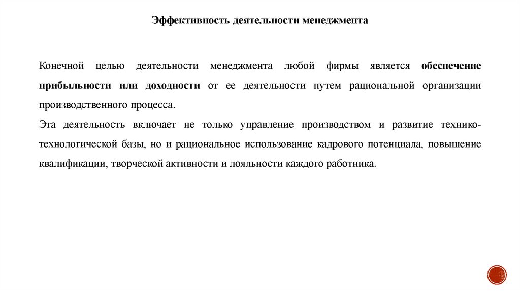 прибыльности или доходности от ее деятельности путем рациональной организации