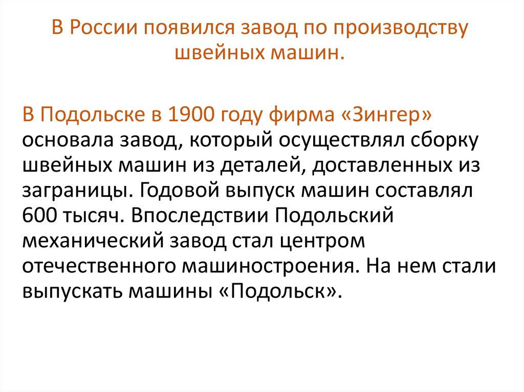 В Подольске в 1900 году фирма «Зингер»