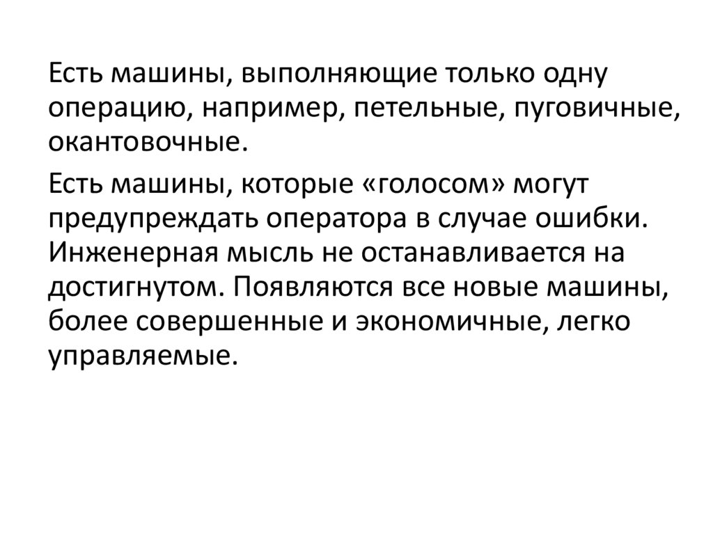 Есть машины, выполняющие только однуоперацию, например, петельные, пуговичные,