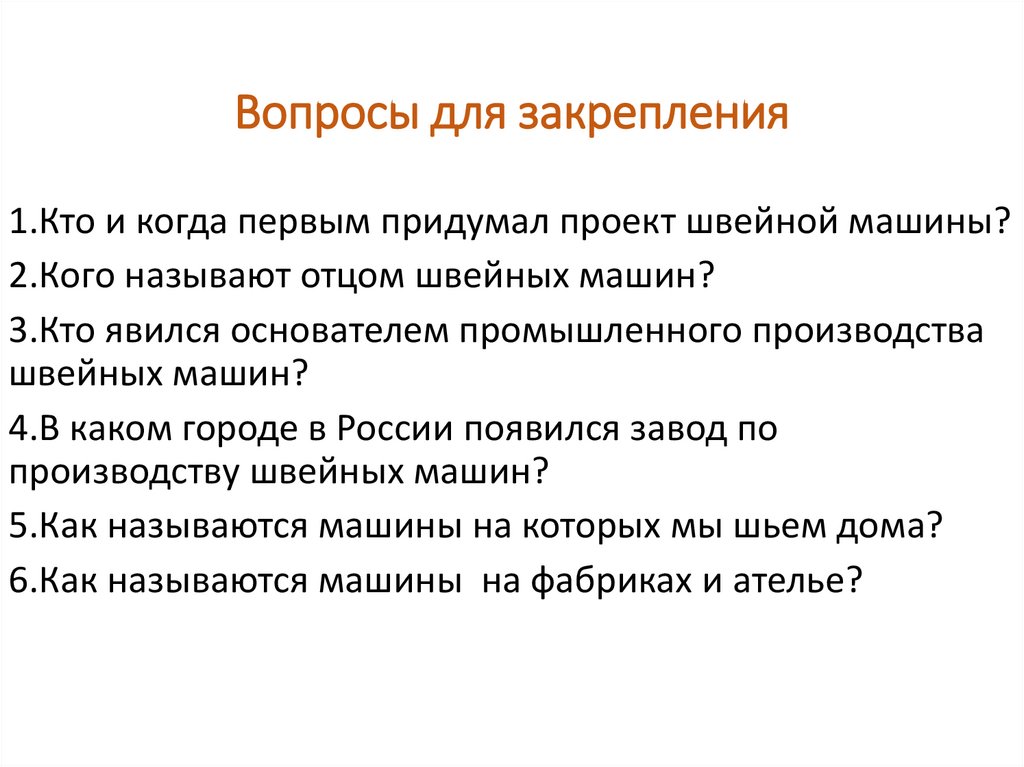 1.Кто и когда первым придумал проект швейной машины?2.Кого называют отцом швейных машин?