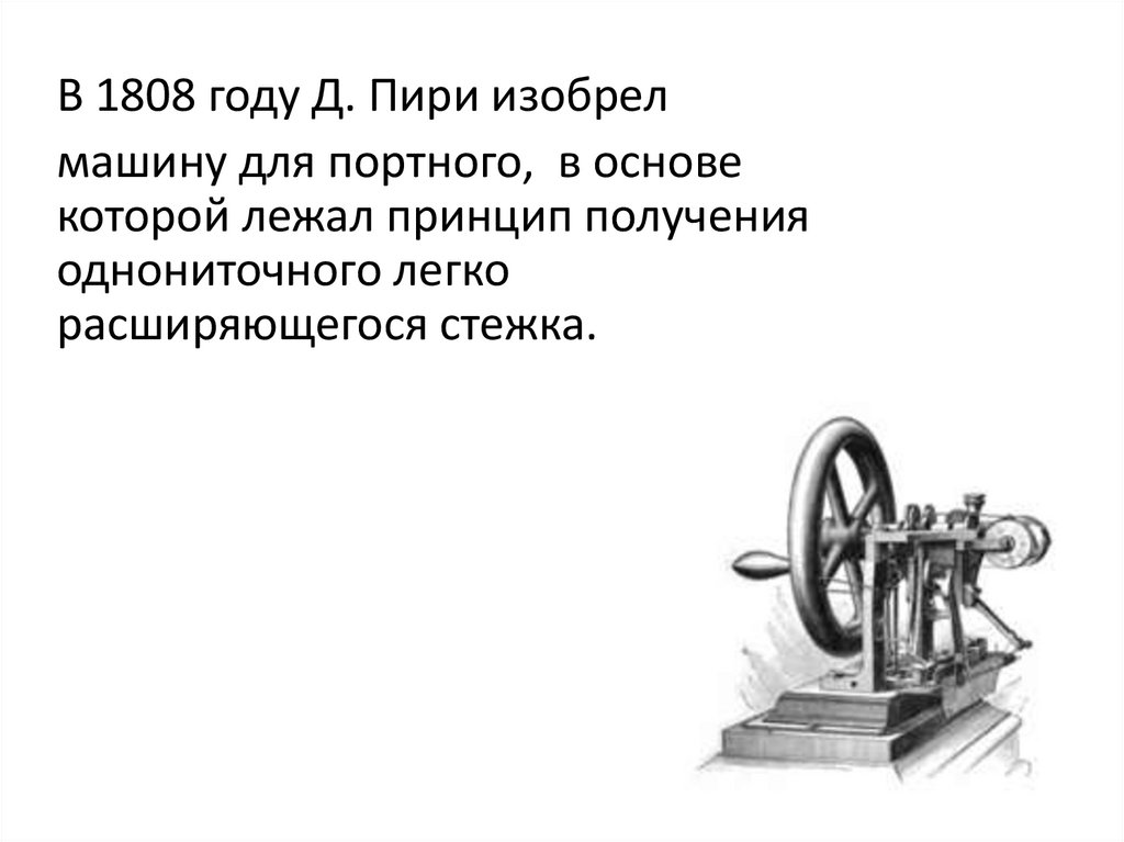 В 1808 году Д. Пири изобрелмашину для портного, в основе