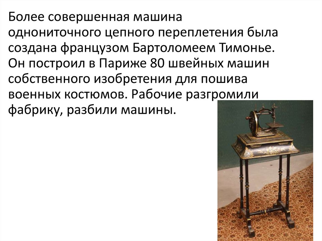 Он построил в Париже 80 швейных машин