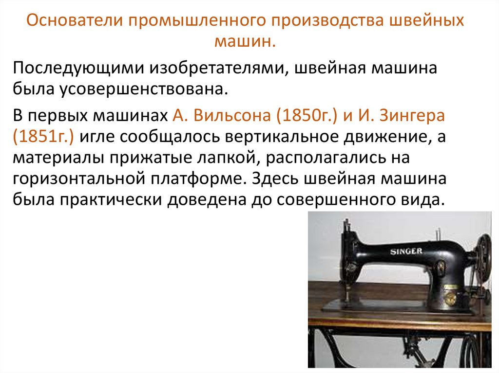Основатели промышленного производства швейныхмашин.