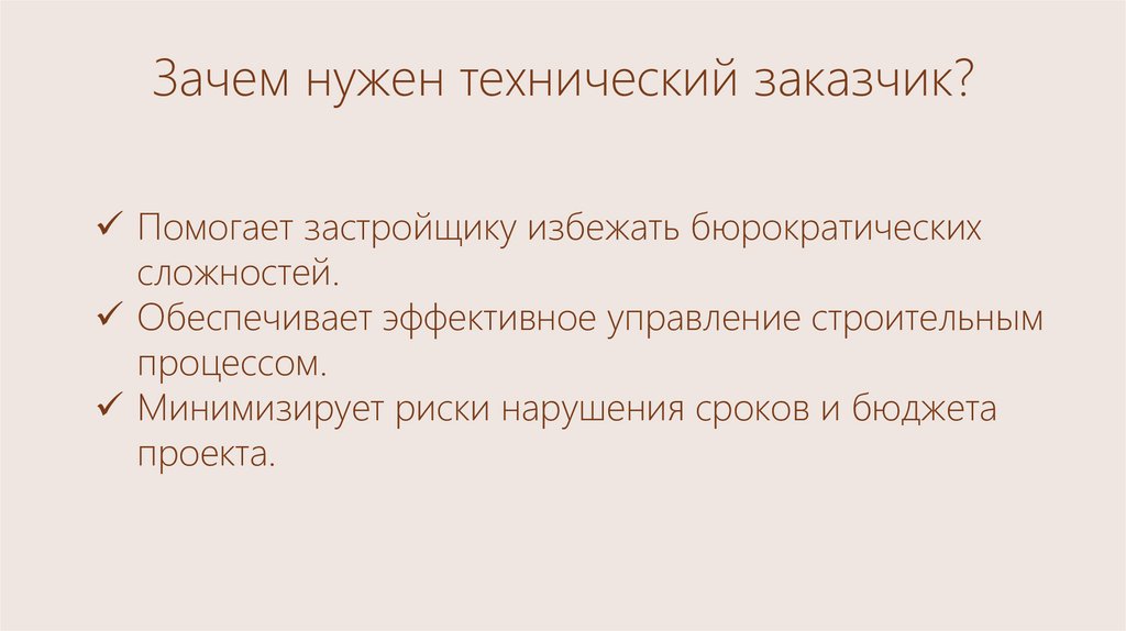Зачем нужен технический заказчик?Помогает застройщику избежать бюрократических