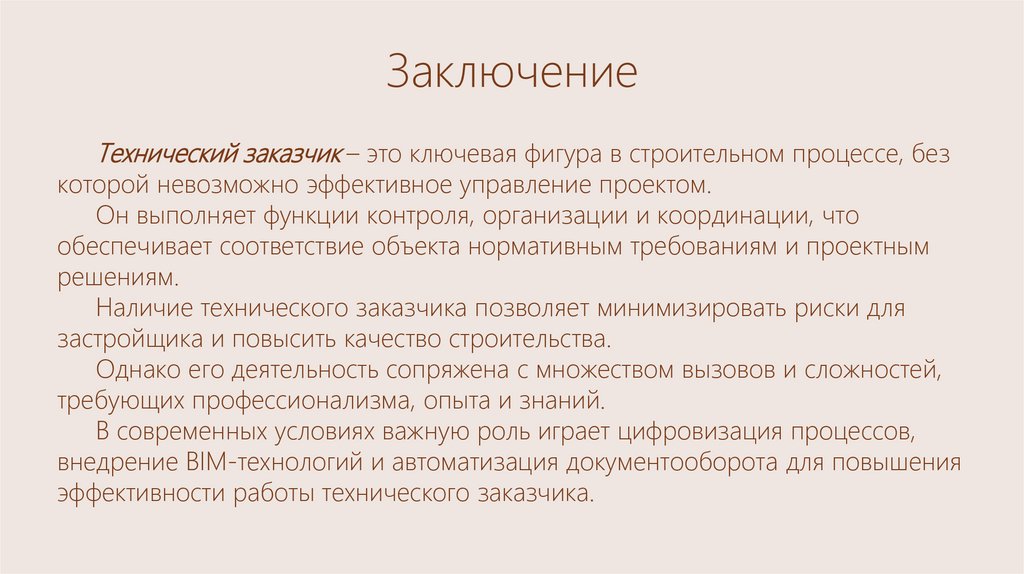ЗаключениеТехнический заказчик – это ключевая фигура в строительном процессе, без