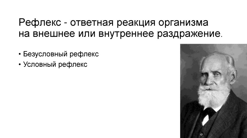 Рефлекс - ответная реакция организмана внешнее или внутреннее раздражение.