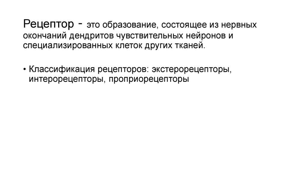 • Классификация рецепторов: экстерорецепторы,