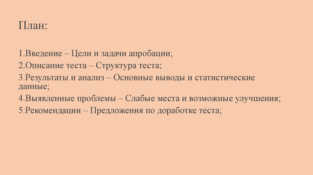 План:1.Введение – Цели и задачи апробации;