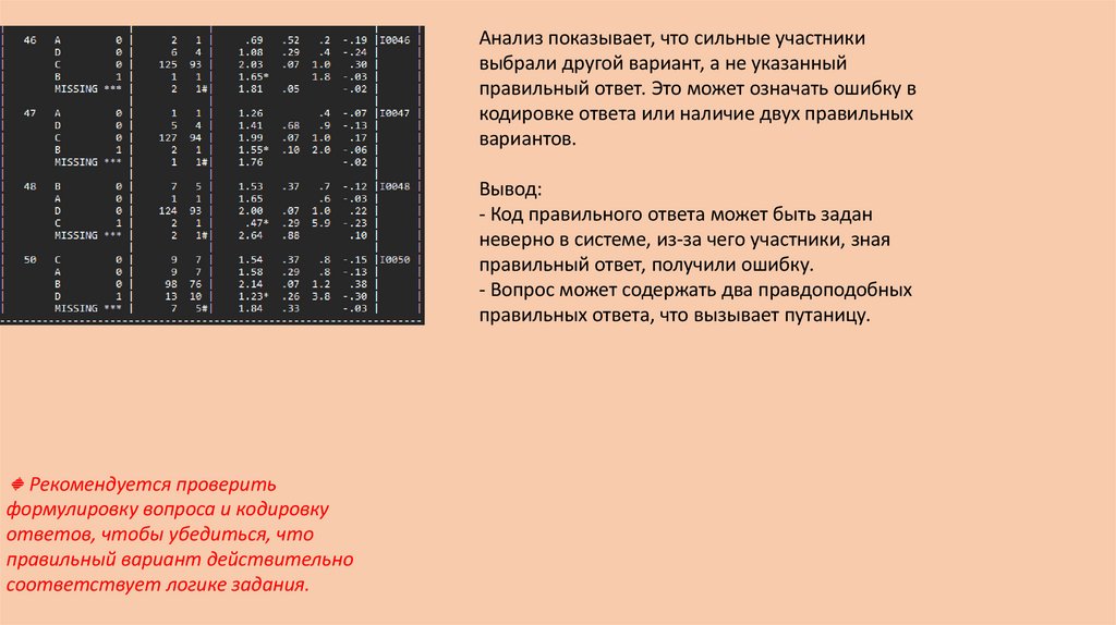Анализ показывает, что сильные участникивыбрали другой вариант, а не указанный